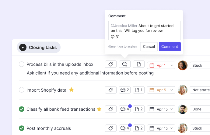 Organize your tasks beyond just the month-end close. Create multiple non-closing task sections for things like payroll, tax items, or administrative work. Create schedules to populate these assignments for your team (i.e. “Run payroll every two weeks on Tuesday.”)